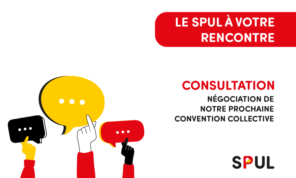 Le comité exécutif du SPUL entreprend, cet automne et jusqu’en janvier, une tournée des facultés afin de recueillir vos préoccupations concernant vos conditions de travail ainsi que vos suggestions pour améliorer notre convention collective.
